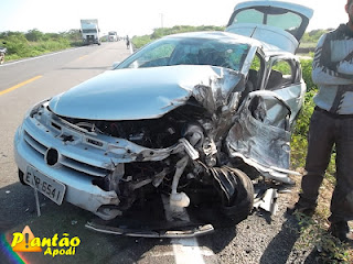 Um grave acidente ocorreu na manhã deste sábado, por volta das 5h30min, na BR-405 entre as cidades de Itaú e Apodi, envolvendo um carro tipo Gol e uma carreta Scania carregada de porcelanato.